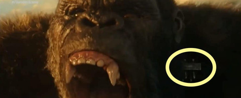 The last thing that we see in this photo is if you look closer at Kong's neck, you can see a collar around his neck. This is where we probably learn that Kong was chained up and in this scene he was able to break loose. Who chained him up? We don't know who and why yet. There is simply not enough info on what is going on to make any speculation on who or why these people wanted Kong in chains.