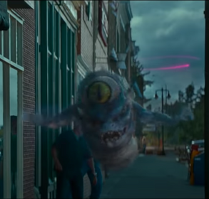 Even though we don't see a whole lot of ghosts in this movie, there are quite a variety of new and classic style ghosts mixed in together. One of the first ghosts that gets busted is a ghost called Metal Muncher, which is this movie's version of Slimer. Very much like Slimer's appetite for food, the Metal Muncher has an appetite for metal and can shoot metal shrapnel it had gorged as a way to defend itself. There are also the café ghost and the giant eyeball demon that goes around terrorizing Summerville. The Stay Puff Marshmallow Man does return as Mini-Stay Puffs that have a personality similar to the gremlins in the movie Gremlins. They may seem cute, at first glance, but they cause quite a bit of mischief for Paul Rudd getting him spotted by a devil dog. Finally, the devil dog couple, Vince Clortho and Zuul (aka "Key Master" and "Gate Keeper"), return in Ghostbusters Afterlife using a mix of practical effects and CGI that worked well in making these creatures look lively and with some personality.