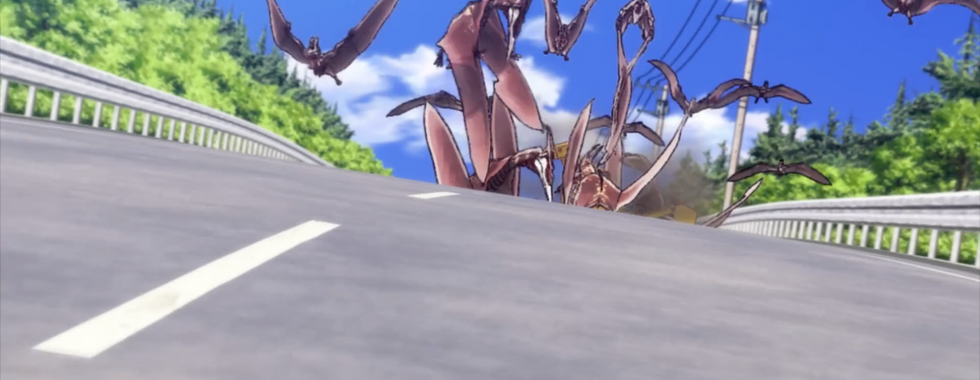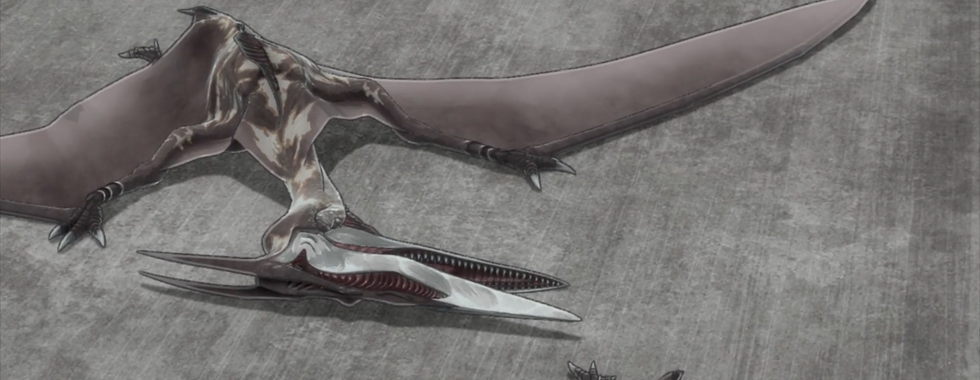 As I said, there were some cool moments in this episode. There was one scene where Yun and Haberu were stuck inside a storage room with a few other people and he attached small water bottles to some arrows and had the student archer fired them causing a whistling noise to distract the Rodans. Then, there was that other scene where Pero 2 came swooping in last minute to save Yun and Haberu from an oncoming Rodan. Those were both really cool moments. I chuckled a little bit after the Rodans destroyed the robot that Pero 2 was controlling because it reminded me of a certain robot called N.I.G.E.L. from Godzilla: The Series. In every episode of that cartoon, this robot would be sent to analyze the monster of that episode and would get destroyed immediately afterwards and Dr. Mendel would get so distraught.