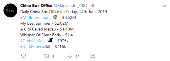 Over the past two weeks, everybody has been constantly checking the box office numbers. We are constantly checking if the next day Godzilla: King Of The Monsters did any better than the previous day. The first weekend, the movie under performed opening with $47+ million, which is way lower than what everybody predicted. Then by the second weekend there was 67% drop pulling in only $15+ million since Dark Phoenix and The Secret Life Of Pets 2 was opening that weekend. This weekend, Godzilla: King Of The Monsters will be hit with another box office drop with Men In Black: International making its debut. The magic number that Godzilla: King Of The Monsters has to hit ranges between $425 - $460 million. From how it is looking for Godzilla, it's not good.