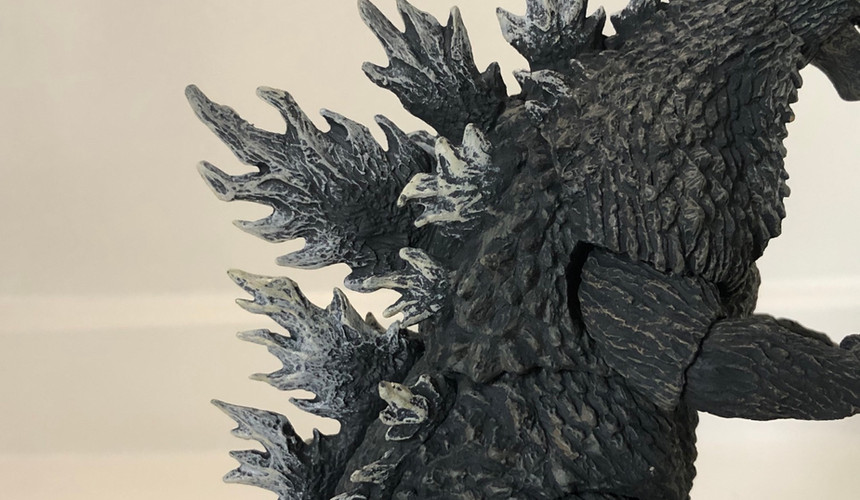 NECA's Godzilla 2003 figure stands at about 7" tall, which is an inch taller than your usual size NECA Godzilla figure and taller than the S.H. MonsterArts Godzilla 2002 figure. Finding room on a shelf should be a no brainer, especially with his tail being mostly ball joints.