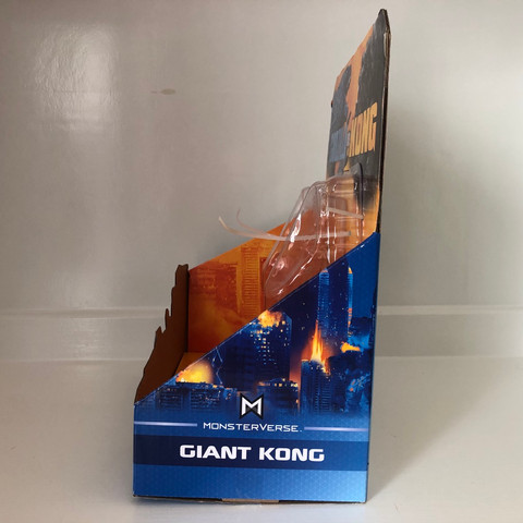 The packaging for the PlayMates Toys Giant Kong comes in the same open box the Giant Godzilla figure also came in. On the front of the box, we have the "new" banner and logo for Godzilla vs Kong, the Monsterverse logo, the "Giant Kong" label, and the companies associated with the movie and merchandise. On the left side of the box, we have another version of the same logo seen on the front of the box.
