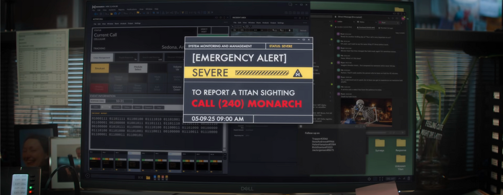 The teaser begins at Monarch call center. Phone calls are pouring in from civilians reporting a Titan sighting. There must be a massive outbreak of Titans as in the background there is a map displaying all of the Titans that look to be active all over the globe.